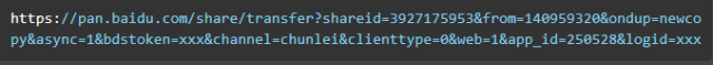 To successfully simulate the transfer, you need to provide the following parameters: shareid, from, bdstoken, filelist, and path. While bdstoken and path can be manually set, shareid, from, and filelist must be extracted from the shared link. This process will be explained in detail in the next section.