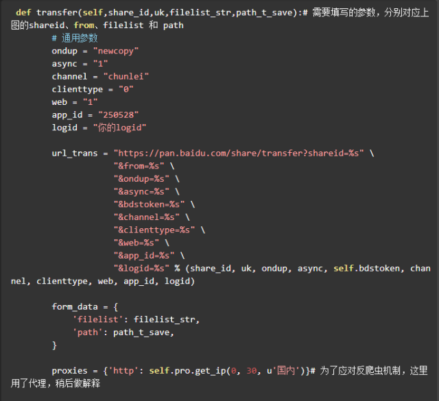 Crawling shareid, from, filelist, and sending the transfer request
